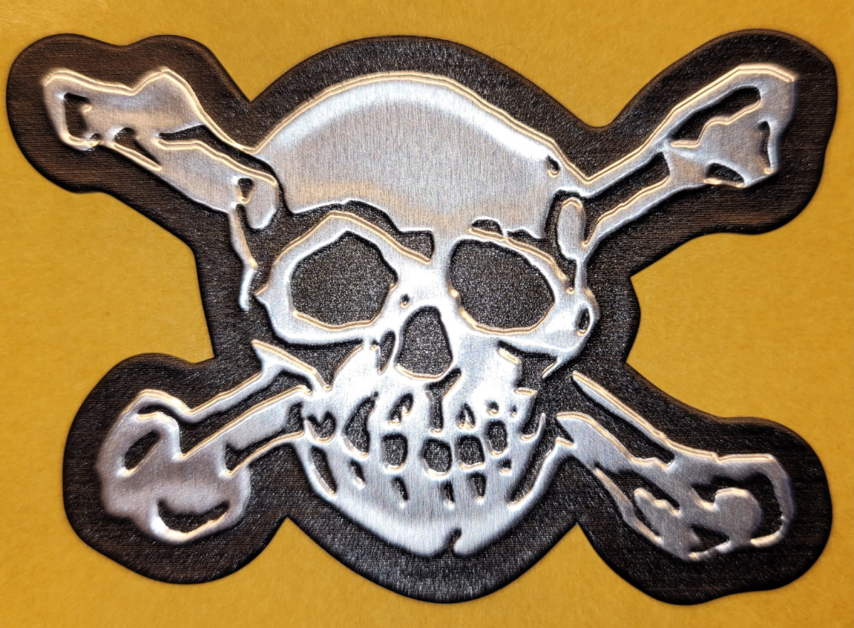 Alu geprägter Schädel zum Aufkleben aufs Steuerrohr...oder so.